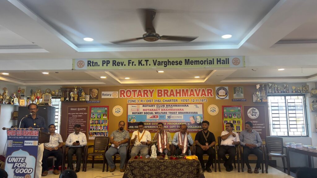 ಬ್ರಹ್ಮಾವರ : ರೋಟರಿ ಕ್ಲಬ್ ಬ್ರಹ್ಮಾವರ, ರೋಟರಾಕ್ಟ್ ಕ್ಲಬ್ ಬ್ರಹ್ಮಾವರ, ರೋಟರಿ ಸೋಶಿಯಲ್ ವೆಲ್ಫೇರ್ ಟ್ರಸ್ಟ್ ಬ್ರಹ್ಮಾವರ, Base (Be Ahead with Sustained Excellence), 10 Seconds ( Science of Success) ಇವರ ಜಂಟಿ ಆಶ್ರಯದಲ್ಲಿ 6 ಪಿಯು ಕಾಲೇಜುಗಳಿಗೆ ವೃತ್ತಿ ಮಾರ್ಗದರ್ಶನ ಕಾರ್ಯಕ್ರಮ ಮತ್ತು ಜೆಇಇ/ನೀಟ್ ಉಲ್ಲೇಖ ಪುಸ್ತಕಗಳ ಉಡುಗೊರೆ ಕಾರ್ಯಕ್ರಮವು ರೋಟರಿ ಭವನದಲ್ಲಿ ನಡೆಯಿತು.