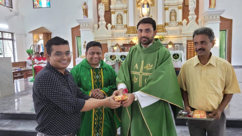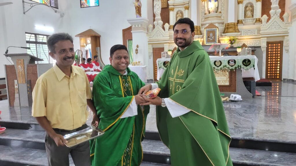 ಗಂಗೊಳ್ಳಿ ಕೊಸೆಸಾಂವ್ ಮಾತೆ ಚರ್ಚಿನ ಧರ್ಮ ಗುರುಗಳಾದ ವಂದನೀಯ ತೋಮಸ್ ರೋಶನ್ ಡಿಸೋಜರವರ ನೇತೃತ್ವದಲ್ಲಿ , ಮೂಲತಃ ಗಂಗೊಳ್ಳಿಯವರಾಗಿ ಪ್ರಸ್ತುತ ಕೆನಡಾದ ಬರ್ಲಿಂಗ್‌ಟನ್ ನಲ್ಲಿ ಸೇವೆ ಸಲ್ಲಿಸುತ್ತಿರುವ ವಂದನೀಯ ಅರುಣ್ ಗೊಡ್ವಿನ್ ಪಿಂಟೊ ರವರ ಸಹಕಾರದೊಂದಿಗೆ ಪವಿತ್ರ ಬಲಿಪೂಜೆಯನ್ನು ಅರ್ಪಿಸಲಾಯಿತು. ಶ್ರೀಮತಿ ರೀನಾ ಪಿಂಟೊ, ಶ್ರೀಮತಿ ಆಶಾ ಡಿಕೋಸ್ಟಾ, ಶ್ರೀ ಐವನ್ ಕಾರ್ಡಿನ್, ಭಗಿನಿ ವಿಜಯ ಕ್ರಾಸ್ತಾ ಎ. ಸಿ, ಭಗಿನಿ ಆ್ಯನೆಟ್ ಎ.ಸಿ, ಶ್ರೀಮತಿ ರೀನಾ ರೆಬೆರೊ, ಕು. ರೀಮಾ ಒಲಿವೇರಾ, ಶ್ರೀಮತಿ ಗ್ಯಾಡಿಸ್ ರೆಬೆಲ್ಲೊ ಹಾಗೂ ಶ್ರೀಮತಿ ಜೆಸಿಂತಾ ಡಿಸೋಜ ಪವಿತ್ರ ಬಲಿಪೂಜೆಗೆ ವಾಚನ ಹಾಗೂ ಗಾಯನಗಳ ಮೂಲಕ ಸಹಕರಿಸಿದರು.