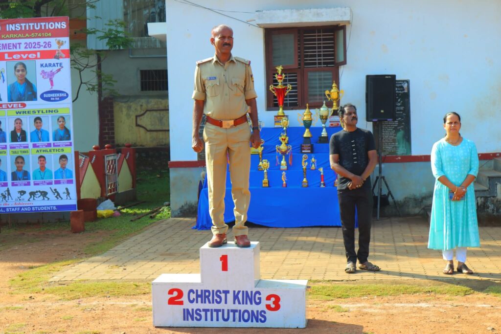 ಕಾರ್ಕಳ: ಇಲ್ಲಿನ ಕ್ರೈಸ್ಟ್ ಕಿಂಗ್ ಶಿಕ್ಷಣ ಸಂಸ್ಥೆಗಳ ವಾರ್ಷಿಕ ಕ್ರೀಡಾಕೂಟ ಸ್ಥಳೀಯ ಗಾಂಧೀ ಮೈದಾನದಲ್ಲಿ ನಡೆಯಿತು. ಮುಖ್ಯ ಅತಿಥಿಗಳಾಗಿ ಆಗಮಿಸಿದ್ದ ಕಾರ್ಕಳ ನಗರ ಠಾಣೆಯ ಸಹಾಯಕ ಪೊಲೀಸ್ ಉಪ ನಿರೀಕ್ಷಕರಾದ ಶೇಖರ್ ನಾಯ್ಕ್ ಅವರು ಕ್ರೀಡಾಪಟುಗಳಿಂದ ಗೌರವ ವಂದನೆ ಸ್ವೀಕರಿಸಿದರು.