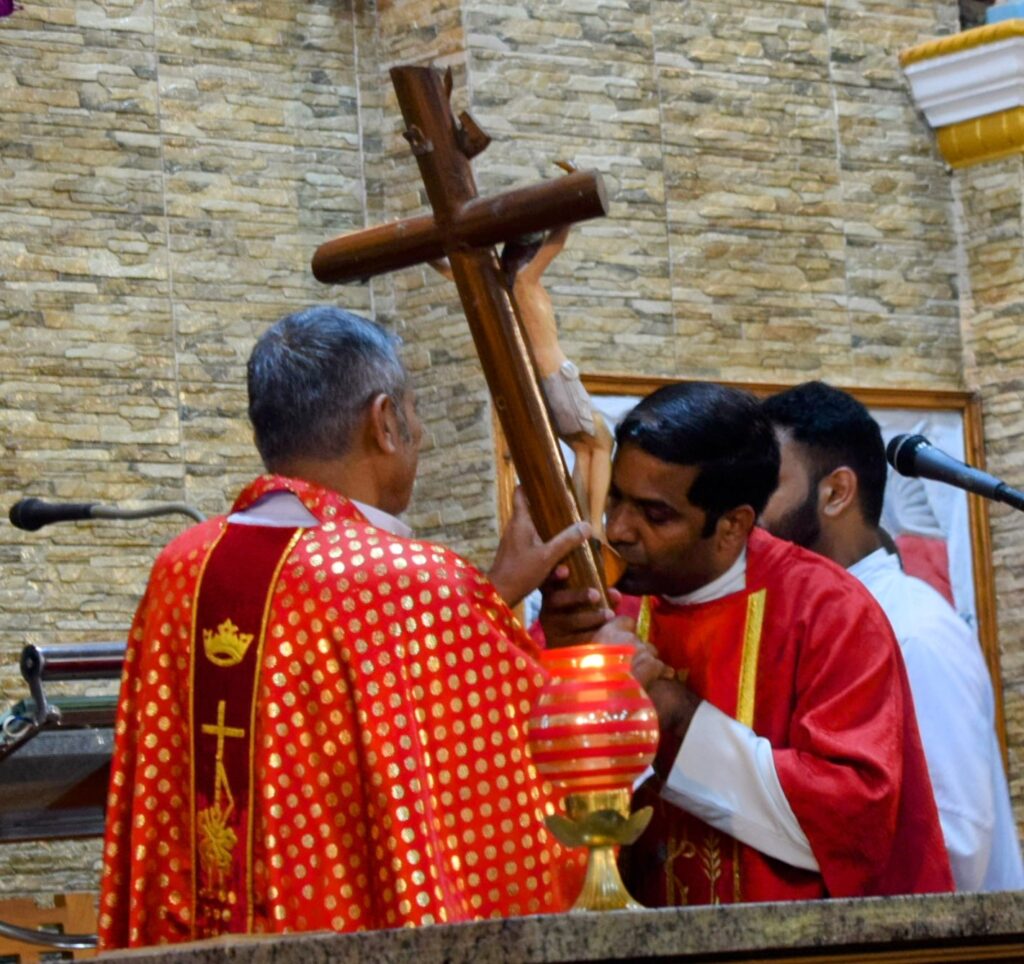 ಚರ್ಚಿನಲ್ಲಿ ಧರ್ಮಗುರುಗಳು ರಕ್ತವರ್ಣದ ಪೂಜಾ ಬಟ್ಟೆಯನ್ನು ಧರಿಸಿ ಯೇಸುಕ್ರಿಸ್ತನ ಕೊನೆಯ ಗಳಿಗೆಗಳ ವೃತ್ತಾಂತ ಓದಿದರು. ಬಳಿಕ ಶಿಲುಬೆಯನ್ನು ಮೆರವಣಿಗೆಯಲ್ಲಿ ತಂದು ಭಕ್ತರು ಮುತ್ತಿಟ್ಟು ತಮ್ಮ 40 ದಿನಗಳ ತ್ಯಾಗದ ಉಳಿಕೆಯ ಹಣವನ್ನು ಬಡಬಗ್ಗರಿಗಾಗಿ ನೀಡಿದರು..
