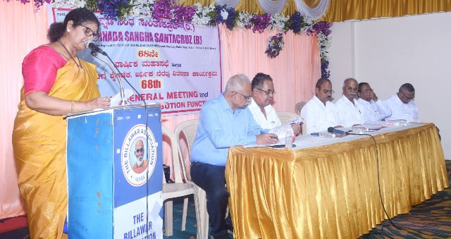 ಕನ್ನಡ ಸಂಘ ಸಾಂತಾಕ್ರೂಜ್ ತನ್ನ ೬೮ನೇ ವಾರ್ಷಿಕ ಮಹಾಸಭೆಂiನ್ನು ಇಂದಿಲ್ಲಿ ಶನಿವಾರ ಸಂಜೆ ಸಾಂತಾಕ್ರೂಜ್ ಪೂರ್ವದಲ್ಲಿನ ಬಿಲ್ಲವ ಭವನದ ಕಿರು ಸಭಾಗೃಹದಲ್ಲಿ ನಡೆಸಿದ್ದು ಸಭಾಧ್ಯಕ್ಷತೆ ವಹಿಸಿ ಅಧ್ಯಕ್ಷೀಯ ಭಾಷಣಗೈದು ಸುಜತಾ ಶೆಟ್ಟಿ ಮಾತನಾಡಿದರು.