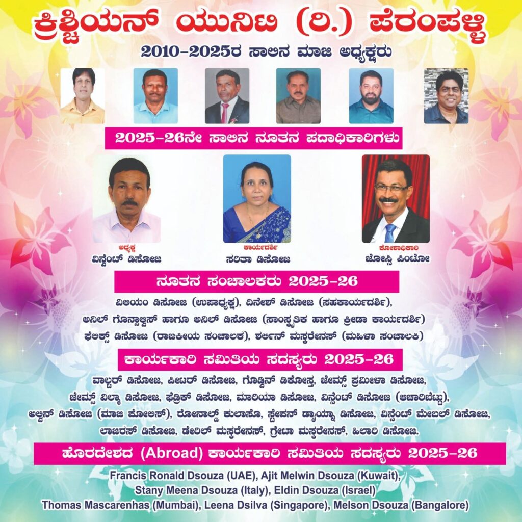 ವಿಲಿಯಂ ಡಿಸೋಜ (ಉಪಾಧ್ಯಕ್ಷ), ದಿನೇಶ್ ಡಿಸೋಜ (ಸಹಕಾರ್ಯದರ್ಶಿ), ಅನಿಲ್ ಗೊನ್ಸಾಲ್ವಿಸ್ ಹಾಗೂ ಅನಿಲ್ ಡಿಸೋಜ (ಸಾಂಸ್ಕೃತಿಕ ಹಾಗೂ ಕ್ರೀಡಾ ಕಾರ್ಯದರ್ಶಿ)
