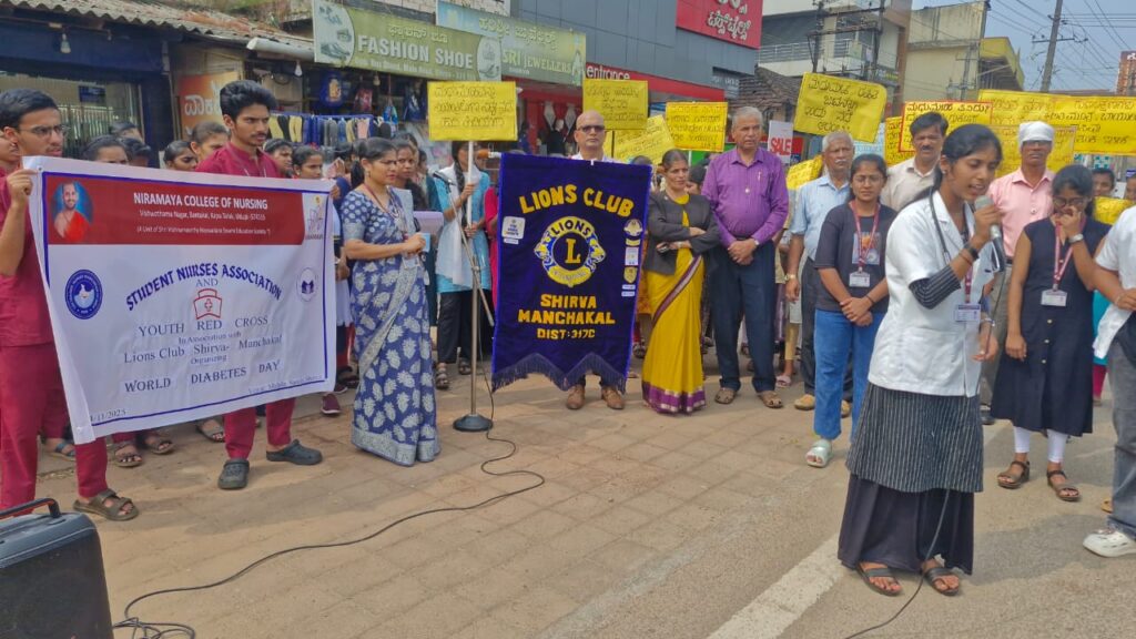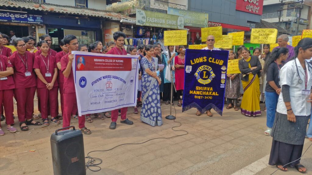 ಶಿರ್ವ ನವೆಂಬರ್ 14ರಂದು ಲಯನ್ಸ್ ಕ್ಲಬ್ ಶಿರ್ವ ಮಂಚಕಲ್ ಇದರ ವತಿಯಿಂದ ಜೀವನದ ಹಂತಗಳಲ್ಲಿ ಮಧುಮೇಹದ ಮಹತ್ವ ಇದರ ಬಗ್ಗೆ ಜಾಥ ನಡೆಯಿತು ವಿಶ್ವ ಮಧುಮೇಹ ದಿನದ ಆಚರಣೆ ಪ್ರಯುಕ್ತ ನಿರಾಮಯ ನರ್ಸಿಂಗ್ ಕಾಲೇಜು ಬಂಟಕಲ್ಲು ಇದರ ವಿದ್ಯಾರ್ಥಿಗಳು ಹಾಗೂ ಲಯನ್ಸ್ ಕ್ಲಬ್ ಶಿರ್ವ ಇದರ ಸದಸ್ಯರು ಒಟ್ಟು ಸೇರಿ ಶಿರ್ವ ಪೇಟೆಯಲ್ಲಿ ಬೀದಿ ನಾಟಕವನ್ನು ಪ್ರದರ್ಶಿಸಿ ಜನರಿಗೆ ಮಾಹಿತಿ ಕೊಟ್ಟರು.ಶಿರ್ವ ಪೇಟೆಯಲ್ಲಿರುವ ಮಹಿಳಾ ಸೌಧದಿಂದ ಸಮುದಾಯ ಆರೋಗ್ಯ ಕೇಂದ್ರದ ವರೆಗೆ ಮೆರವಣಿಗೆ ನಡೆಸಿ ಸಾರ್ವಜನಿಕರಿಗೆ ಡಯಾಬಿಟಿಸ್ ಬಗ್ಗೆ ಅರಿವು ಮೂಡಿಸಲಾಯಿತು