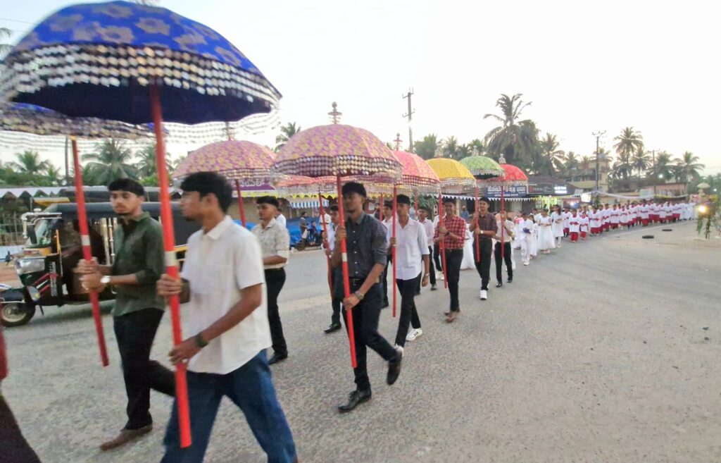 ಮೆರವಣಿಗೆ ಉದ್ದಕ್ಕೂ ದೇವರ ಭಕ್ತಿ ಗೀತೆಗಳು ಮೊಳಗಿದವು. ಮೆರವಣಿಗೆ ಮೆರಗನ್ನು ಹೆಚ್ಚಿಸಲು ಬ್ರಾಸ್ ಬ್ಯಾಂಡ್ ಹಾಗೂ ಯುವಕರ ತಂಡದಿಂದ ಛತ್ರಿಯ ಮೆರವಣಿಗೆ ಹಿಂದಿನ ವರ್ಷದಲ್ಲಿ ಪರಮ ಪ್ರಸಾದವನ್ನು ಸೇವಿಸಿದ ಮಕ್ಕಳಿಂದ ಹೂವು ಅರ್ಪಣೆ, ತೆರೆದ ವಾಹನದಲ್ಲಿ ಪರಮ ಪ್ರಸಾದವನ್ನು ಹಿಡಿದು ಪೇಟೆಯಲ್ಲಿ ಸಂಭ್ರಮದ ದಿಂದ ಮೆರವಣಿಗೆ ನಡೆಯಿತು.