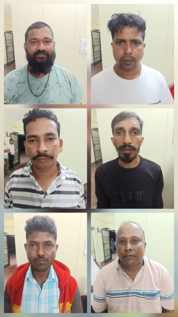 ದಿನಾಂಕ:16/11/2025 ರಂದು ರಾತ್ರಿ 19:45 ಗಂಟೆಗೆ ಮೊಯಿದ್ದೀನ್ಪುರ ಶಿರೂರು ಗ್ರಾಮದ ಸರಕಾರಿ ಹಾಡಿಯಲ್ಲಿ ಸಾರ್ವಜನಿಕ ಸ್ಥಳದಲ್ಲಿ ಇಸ್ಪೀಟು ಜುಗಾರಿ ಆಟ ಆಡುತ್ತಿದ್ದ ಬಗ್ಗೆ ಮಾಹಿತಿ ದೊರೆತ ಮೇರೆಗೆ ತಿಮ್ಮೇಶ್ ಬಿ ಎನ್ ಪಿಎಸ್ ಐ ಬೈಂದೂರು ಪೊಲೀಸ್ ಠಾಣೆ ಇವರು ಸಿಬ್ಬಂಧಿಯರವರ ಜೊತೆ ಸ್ಥಳಕ್ಕೆ ಸ್ಥಳಕ್ಕೆ ಹೋದಾಗ ಸಾರ್ವಜನಿಕ ಸ್ಥಳದಲ್ಲಿ ಕೆಲವರು ನೆಲದ ಮೇಲೆ ಕಪ್ಪು ಬಣ್ಣದ ಟಾರ್ಪಾಲ್ಯನ್ನು ಹಾಸಿ ಕ್ಯಾಂಡಲ್ ಬೆಳಕಿನಲ್ಲಿ ಅದರಲ್ಲಿ ಓರ್ವನು ತನ್ನ ಕೈಯಲ್ಲಿರುವ ಇಸ್ಪೀಟ್ ಎಲೆಗಳನ್ನು ಒಂದೊಂದಾಗಿ ಟಾರ್ಪಾಲ್ ಮೇಲೆ ಎರಡು ಭಾಗಗಳಾಗಿ ಹಾಕುತ್ತಿರುವಾಗ ಉಳಿದವರು ಅಂದರ್ 100 ರೂಪಾಯಿ ಬಾಹರ್ 200 ರೂಪಾಯಿ ಎಂದು ಹೇಳುತ್ತಾ ಹಣವನ್ನು ಪಣವಾಗಿರಿಸಿಕೊಂಡು ಜೂಜಾಟ ಆಡುತ್ತಿದ್ದ 1. ಶೇಖರ (36) ತಂದೆ: ಬಸವಪ್ಪ ಹಣಬರ ವಾಸ ಜೋಗೂರು , ಪಡುವರಿ ಗ್ರಾಮ, 2. ಹರೀಶ್ ನಾಯ್ಕ್ (42) ತಂದೆ: ವೆಂಕಟೇಶ ನಾಯ್ಕ್ ವಾಸ ಬೈದನ್ ಮನೆ, ಮಾರುತಿ ನಗರ, ಭಟ್ಕಳ, 3.ದೇವಂದ್ರ ಜಟ್ಟಪ್ಪ ನಾಯ್ಕ್ ( 38) ತಂದೆ: ಜಟ್ಟಪ್ಪ ವಾಸ: ಮಂಡೂಳಿ ಭಟ್ಕಳ ತಾಲೂಕು 4.ಆಶೋಕ ವೆಂಕಟೇಶ ನಾಯ್ಕ್(42), ತಂದೆ: ವೆಂಕಟೇಶ ನಾಯ್ಕ್ ವಾಸ: ತಲಾನ್ ಮುಟ್ಟಳ್ಳಿ ಪೋಸ್ಟ್ , ಭಟ್ಕಳ ತಾಲೂಕು 5.ನಾಗಪ್ಪ ಗೊವೀಂದ ನಾಯ್ಕ್(45) ತಂದೆ: ಗೋವಿಂದ ವಾಸ: ಕಲ್ಲಬಂಡಿ ಮನೆ ಬೆಳ್ಕ ಪೋಸ್ಟ್ ಭಟ್ಕಳ ತಾಲೂಕು 6] ದಿನಕರ(32), ತಂದೆ: ರಾಮ ವಾಸ: ಮೊಯಿದ್ದೀನ್ ಪುರ ಶಿರೂರು ಗ್ರಾಮ ಇವರನ್ನು ಹಿಡಿದುಕೊಂಡಿರುವುದಾಗಿದೆ. ಸದ್ರಿಯವರುಗಳನ್ನು ವಿಚಾರಿಸಿದಾಗ ಸ್ವಂತ ಲಾಭಕ್ಕಾಗಿ ಇಸ್ಪೀಟ್ ಜುಗಾರಿ ಆಟವಾಡುತ್ತಿರುವುದಾಗಿ ತಿಳಿಸಿದ್ದು ಆಪಾದಿತರು ಇಸ್ಪೀಟ್ ಜುಗಾರಿ ಆಡುತ್ತಿದ್ದ ಸ್ಥಳದಲ್ಲಿ ಎದುರುಗಡೆ ಹಣವನ್ನು ಇಟ್ಟುಕೊಂಡು ಟಾರ್ಪಾಲ್ ಮೇಲೆ ಜೂಜಾಟಕ್ಕೆ ಹಾಕುತ್ತಿದ್ದ ಹಣವನ್ನು ಹಾಗೂ ಜೂಜಾಟಕ್ಕೆ ಉಪಯೋಗಿಸಿದ 1) ಇಸ್ಟೀಟ್, ಡೈಮಂಡ್, ಆಟೀನ್, ಕ್ಲವರ್ ಚಿತ್ರ ಇರುವ ಇಸ್ಟೀಟ್ ಎಲೆಗಳು-52, 2) ನಗದು ರೂಪಾಯಿ-24010/- ರೂ ಹಾಗೂ ಸ್ಥಳದಲ್ಲಿದ್ದ 1. KA.47X3978 ಅಕ್ಟಿವ್ ಡಿಯೋ, 2. KA20.HF.5957 HERO SUPER SPLENDER 3. KA.20.X.0003SUPER SPLENDER ಮತ್ತು 4. KA.20EN.1250 ಬಜಾಜ್ ಪಲ್ಸರ್ ಮೋಟಾರ ಸೈಕಲ್ನೊಂದಿಗೆ ಸ್ವತ್ತುಗಳನ್ನು ವಶಪಡಿಸಿ ಕೊಂಡಿರುವುದಾಗಿದೆ. ಈ ಬಗ್ಗೆ ಬೈಂದೂರು ಪೊಲೀಸ್ ಠಾಣಾ ಅಪರಾಧ ಕ್ರಮಾಂಕ : 200/2025 ಕಲಂ: 87 KP Actರಂತೆ ಪ್ರಕರಣ ದಾಖಲಿಸಿಕೊಳ್ಳಲಾಗಿದೆ.