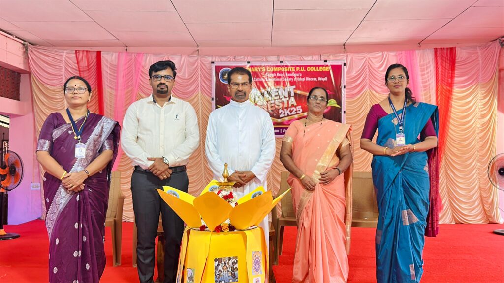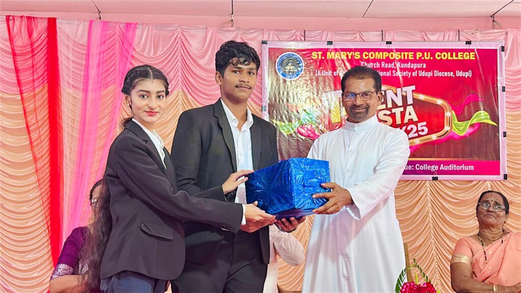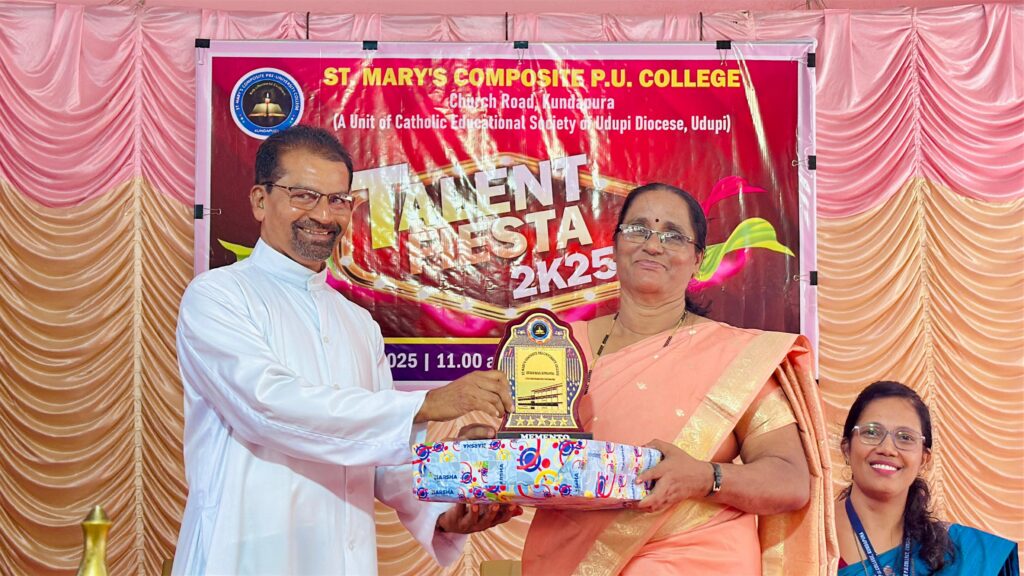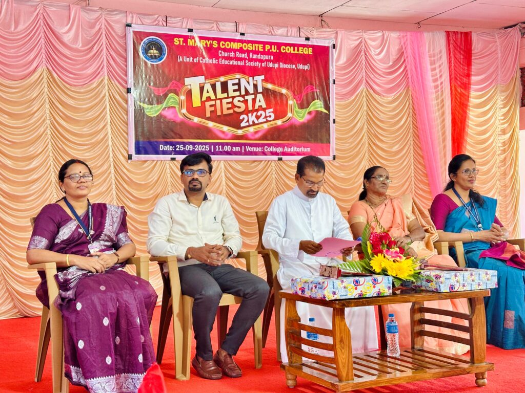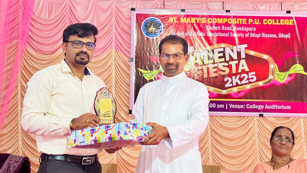 ಕುಂದಾಪುರ:25.09.2025 ರಂದು ನಗರದ ಸೈoಟ್ ಮೇರಿಸ್ ಪದವಿಪೂರ್ವ ಕಾಲೇಜಿನಲ್ಲಿ ವಿದ್ಯಾರ್ಥಿಗಳಲ್ಲಿ ಹುದುಗಿರುವ ಪ್ರತಿಭೆಗಳನ್ನು ಹೊರಸೂಸಲು “Talent Fiesta-2K25″ಎನ್ನುವ ಹೆಸರಿನಿಂದ ವೇದಿಕೆ ಸಜ್ಜುಗೊಳಿಸಲಾಯಿತು. ಈ ಸಮಯದಲ್ಲಿ ಕಾರ್ಯಕ್ರಮದ ಅಧ್ಯಕ್ಷತೆ ವಹಿಸಿರುವ ವಿದ್ಯಾ ಸಂಸ್ಥೆಗಳ ಸಂಚಾಲಕರು ಹಾಗೂ ಚರ್ಚಿನ ಧರ್ಮ ಗುರುಗಳು ಆಗಿರುವ ಅ| ವಂ| ಫಾದರ್ ಪಾವ್ಲ್ ರೇಗೊರವರು ಪ್ರತಿಭೆಗೆ ಪೂರಕವಾಗಿ ಅರಳಿದ ಕಮಲದ ಹೂವಿನ ದಳಗಳ ಮಧ್ಯೆ ದೀಪ ಬೆಳಗುವುದರೊಂದಿಗೆ ಕಾರ್ಯಕ್ರಮ ಉದ್ಘಾಟಿಸಿ, ಪ್ರತಿಭೆ ಎಲ್ಲರಲ್ಲೂ ಇದೆ. ಸರಿಯಾದ ವೇದಿಕೆ ಸಿಕ್ಕಾಗ ಬಳಸಿಕೊಳ್ಳಬೇಕು ಎನ್ನುತ್ತಾ ವಿದ್ಯಾರ್ಥಿಗಳೆಲ್ಲರೂ ಅವರವರ ಆಸಕ್ತಿಗೆ ಅನುಗುಣವಾಗಿ ತಮ್ಮ ವ್ಯಕ್ತಿತ್ವ ರೂಪಿಸಿಕೊಳ್ಳಬೇಕು ಎಂದು ಹೇಳಿ ವಿಜೇತ ಪ್ರಥಮ ತಂಡಕ್ಕೆ ಬಹುಮಾನ ವಿತರಿಸಿ ವಿದ್ಯಾರ್ಥಿಗಳನ್ನು ಪ್ರಶಂಸಿಸಿದರು.