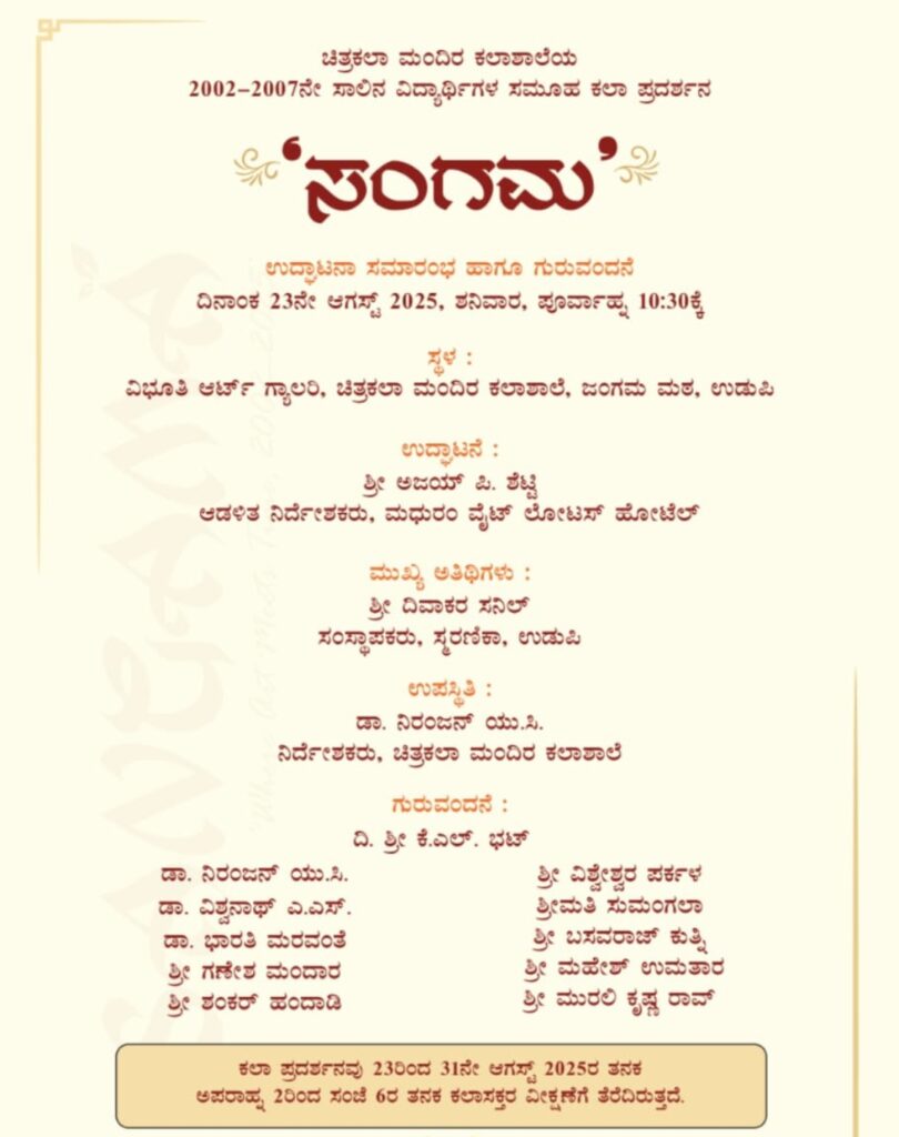 ಉಡುಪಿಯ ಚಿತ್ರಕಲಾ ಮಂದಿರ ಕಲಾಶಾಲೆಯಲ್ಲಿ ಚಿತ್ರಕಲೆಯ ಬಗೆಗಿನ ಕಲಾ ಪದವಿಯನ್ನು ೨೦೦೨-೨೦೦೭ರ ಸಾಲಿನಲ್ಲಿ ಪೂರೈಸಿದ ಕಲಾವಿದರ ತಂಡವು ೧೮ ವರ್ಷಗಳ ನಂತರ ಮತ್ತೊಮ್ಮೆ ಜೊತೆ ಸೇರುತ್ತ ತಾವು ಕಲಿತ ಕಲಾಶಾಲೆಯಲ್ಲಿಯೇ ಸಮೂಹ ಪ್ರದರ್ಶನ ಹಾಗೂ ಗುರುವಂದನೆ ಕಾರ್ಯಕ್ರಮ ನಡೆಸಲು ಯೋಜಿಸಿದೆ.
