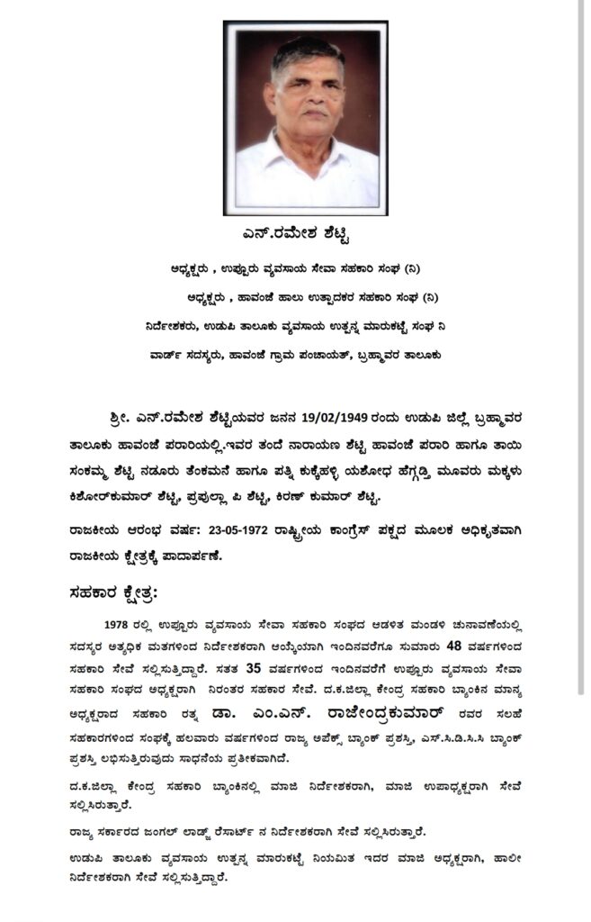 ಕರ್ನಾಟಕ ರಾಜ್ಯ ಸಹಕಾರ ಮಹಾಮಂಡಳ ನಿ., ಬೆಂಗಳೂರು ಇವರು ಸಹಕಾರ ಕ್ಷೇತ್ರದ ಸಾಧಕರಿಗೆ ಕೊಡಮಾಡುವ 2025 ನೇ ಸಾಲಿನ ಸಹಕಾರ ರತ್ನ ಪ್ರಶಸ್ತಿ ಹಿರಿಯ ಸಹಕಾರಿ ನಾಯಕ, ಉಪ್ಪೂರು ವ್ಯವಸಾಯ ಸೇವಾ ಸಹಕಾರಿ ಸಂಘದ ಮಾನ್ಯ ಅಧ್ಯಕ್ಷರಾದ ಎನ್ ರಮೇಶ್ ಶೆಟ್ಟಿ ರವರಿಗೆ ಲಭಿಸಿದೆ.